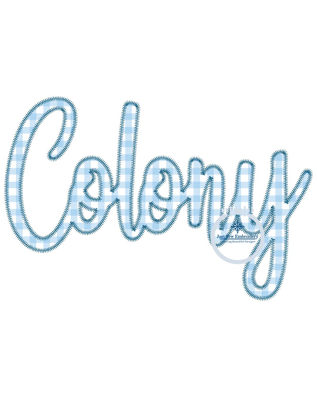 Colony Script Satin Applique Embroidery Design Five Sizes 5x7, 8x8, 6x10, 7x12, and 8x12 Hoop