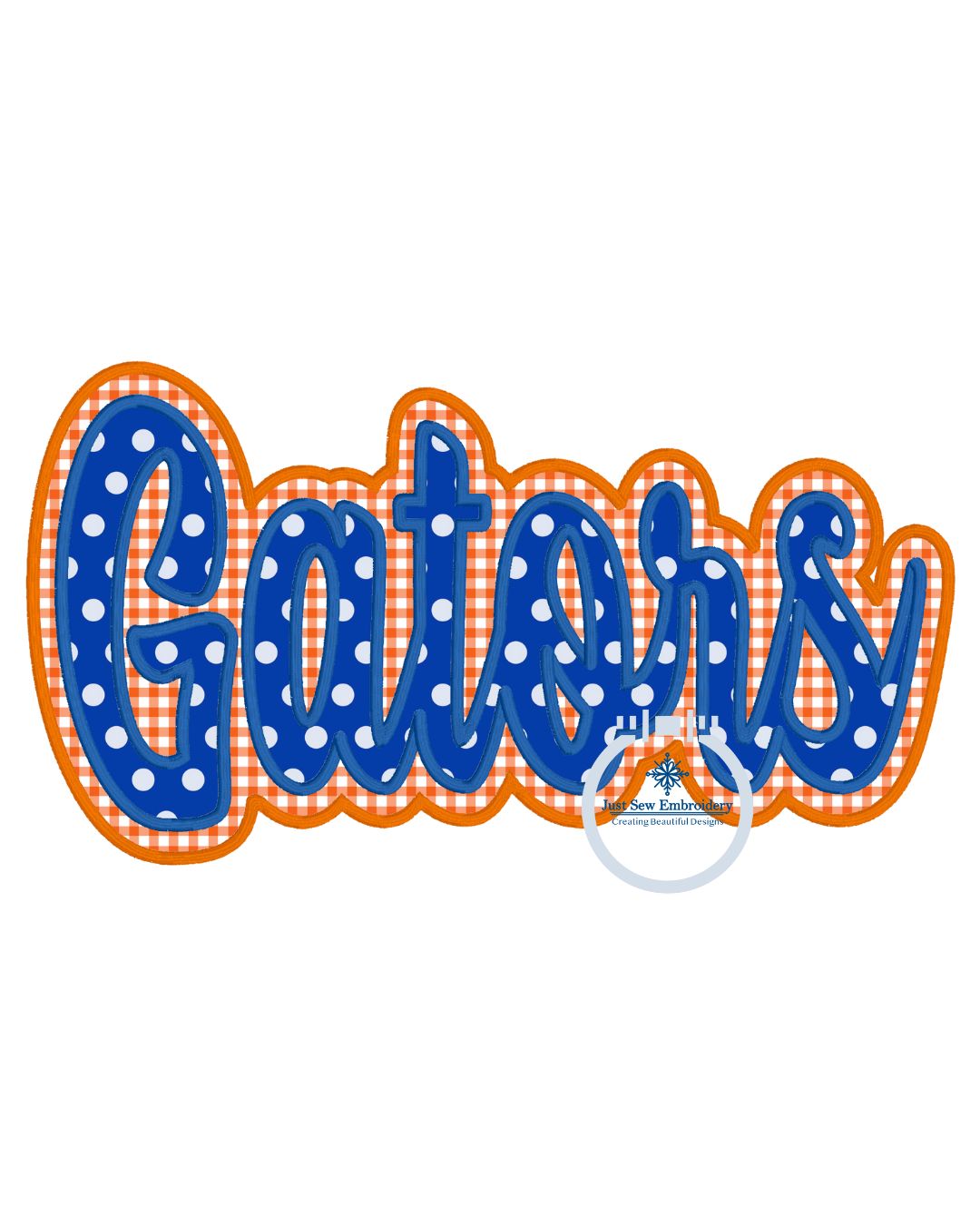GATORS Applique Embroidery Script Double LayerSatin Edge Five Sizes 5x7, 8x8, 9x9, 6x10, 7x12 Hoop