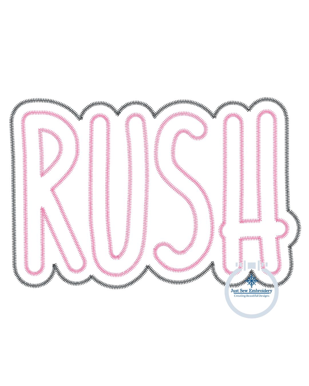 RUSH Applique Embroidery Design Zigzag Stitch Six Sizes 5x7, 8x8, 9x9, 6x10, 7x12, and 8x12 Hoop